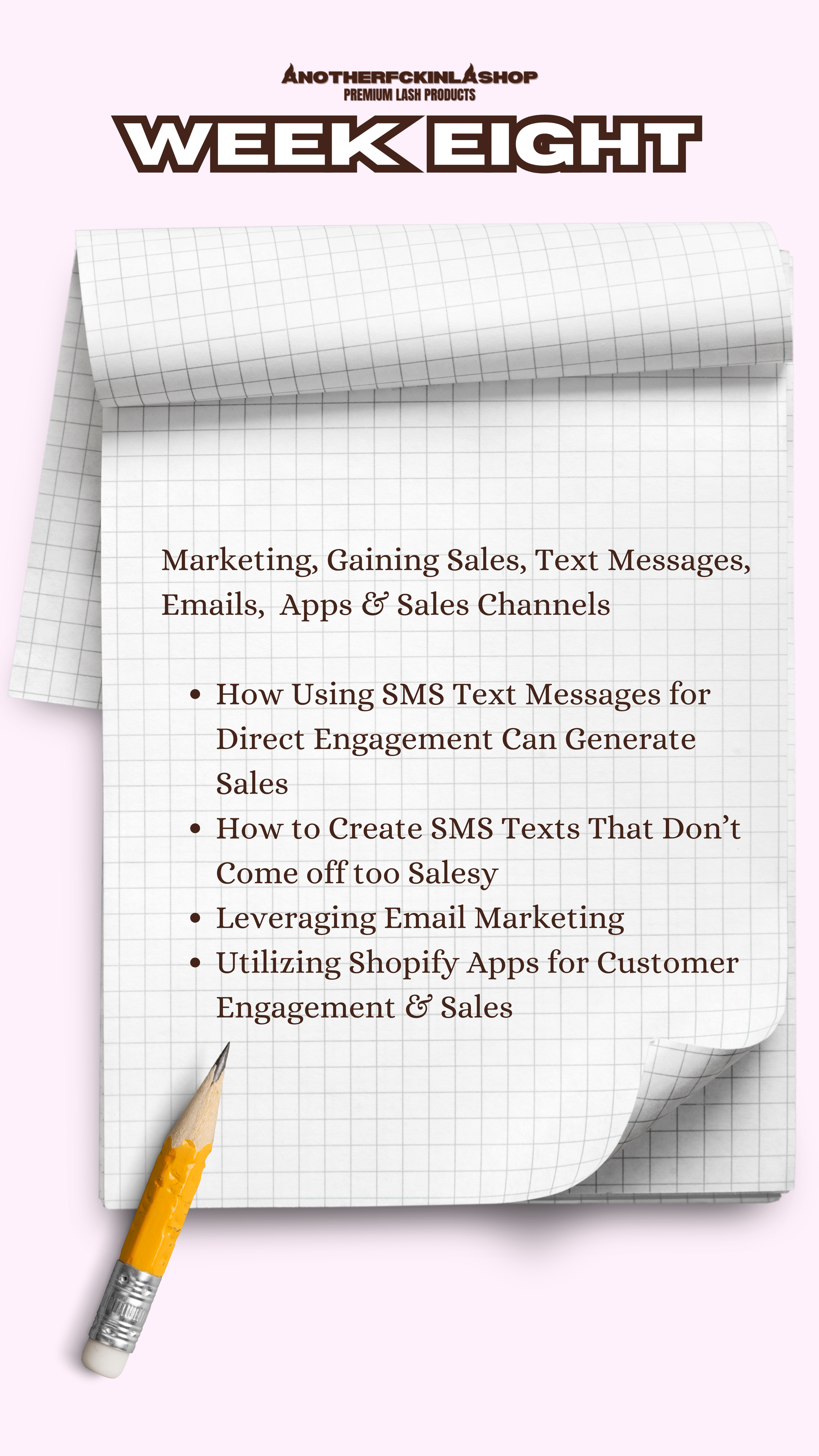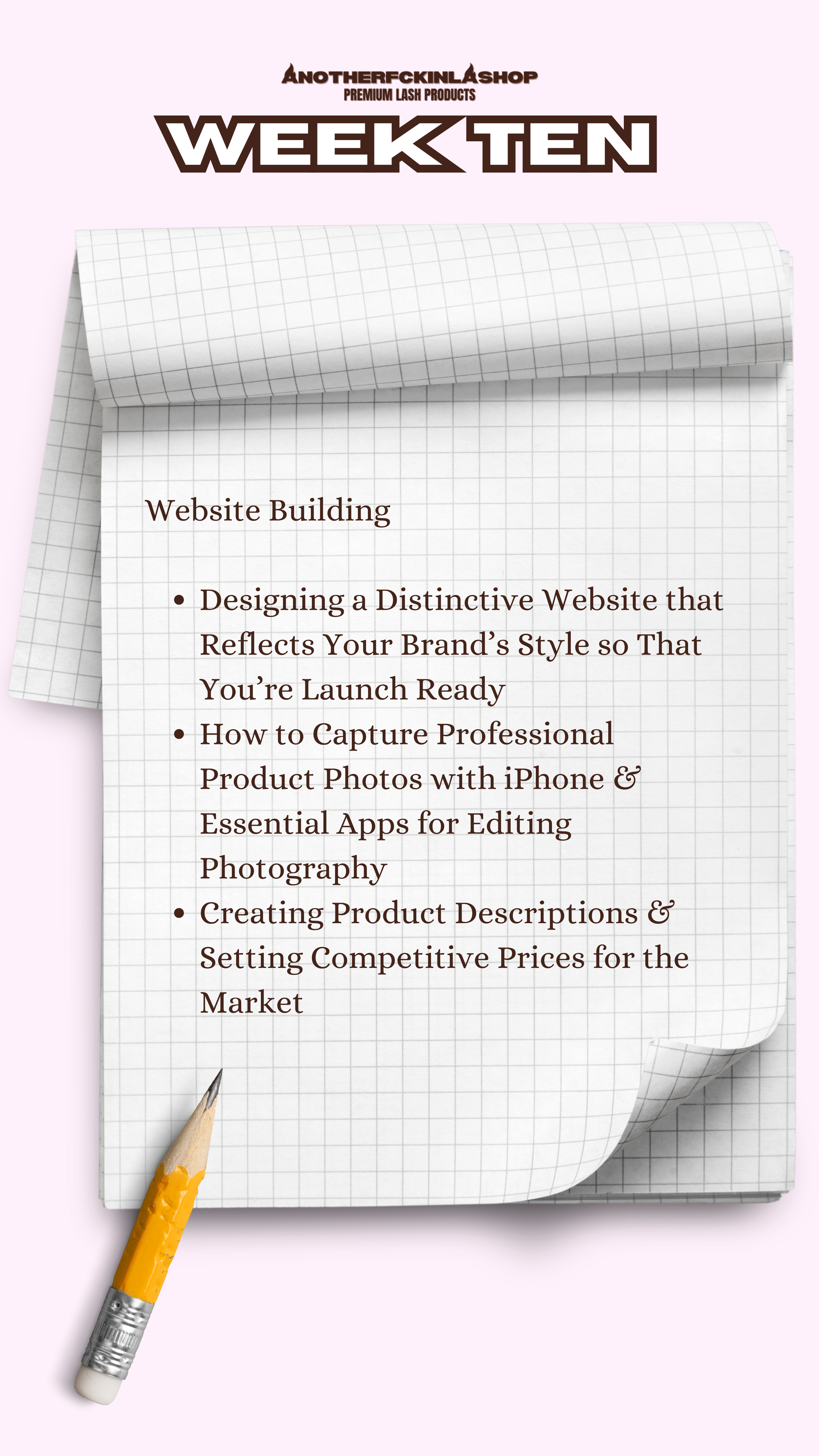 -10 WEEK STEP BY STEP PLAN AND EACH WEEK IS DEDICATED TO A DIFFERENT ASPECT OF YOUR SHOP